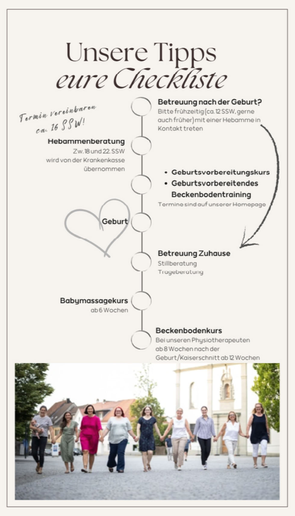 Wir sind ein Team aus sechs Wahlhebammen und vier Physiotherapeutinnen.